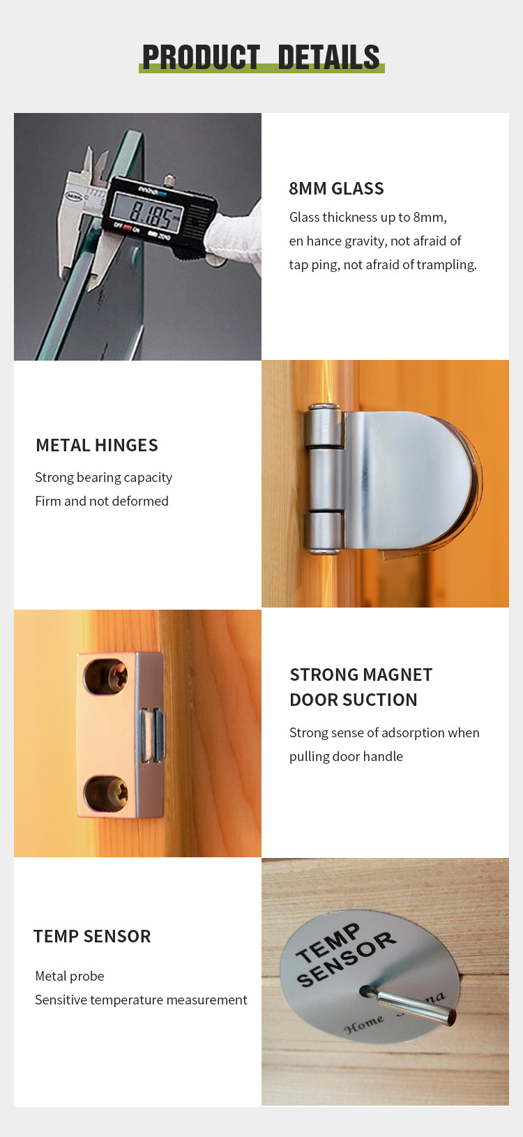 Materiais de madeira premium: Oferecemos três opções de madeira de primeira linha para sauna infravermelha e a vapor de madeira para 1 a 3 pessoas, todas provenientes do Canadá: Pinho Canadá (uma madeira dura com alta resistência, boa elasticidade e facilidade de processamento e pregamento); Cicuta do Canadá (apresenta alta densidade de madeira, grão de madeira natural, boa textura, resistência à corrosão e sem deformação); Cedro Vermelho Canadense (possui alta densidade de madeira, grão elegante, resistência à corrosão, sem deformação e uma fragrância natural de madeira).