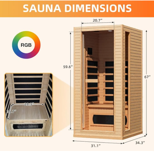 Seu corpo compacto (geralmente medindo cerca de 100 × 80 × 190cm) é adequado para espaços pequenos, como casas e apartamentos, e é fácil de instalar e conectar para uso. Equipado internamente com bancos confortáveis e design de malha respirável, juntamente com um sistema inteligente de controle de temperatura (faixa de temperatura ajustável de 30-65 ℃), a duração pode ser definida de acordo com as necessidades (0-60 minutos), equilibrando a segurança e o conforto.
