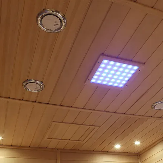 3. Experiência de aquecimento e iluminação: Painéis de aquecimento infravermelho distante distribuídos uniformemente fornecem calor suave e penetrante; luzes ambientes superiores + laterais (em tons quentes) aumentam o relaxamento e evitam o entupimento ou a opressão