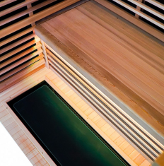 O destaque da sauna é o sistema de aquecimento duplo. Os elementos de aquecimento infravermelho permitem uma penetração profunda, aquecendo o corpo de dentro para fora para promover a circulação sanguínea e a desintoxicação. O sistema de aquecimento auxiliar garante um rápido aumento da temperatura, permitindo que a sauna atinja a temperatura desejada em pouco tempo. Esta combinação não só aumenta a eficiência do aquecimento, mas também mantém a distribuição uniforme da temperatura, eliminando pontos frios.