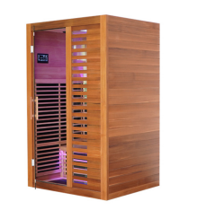 Esta sauna de infravermelho distante com aquecimento duplo, feita de cicuta canadense grau A, é a escolha ideal para o bem-estar doméstico. Ele vem com luz roxa integrada e luzes RGB opcionais que mudam de cor, combinando desempenho de aquecimento eficiente com ambiente visual confortável. A construção durável da cicuta canadense garante uma operação estável e uma longa vida útil, tornando-a perfeita para relaxamento e desintoxicação diários.