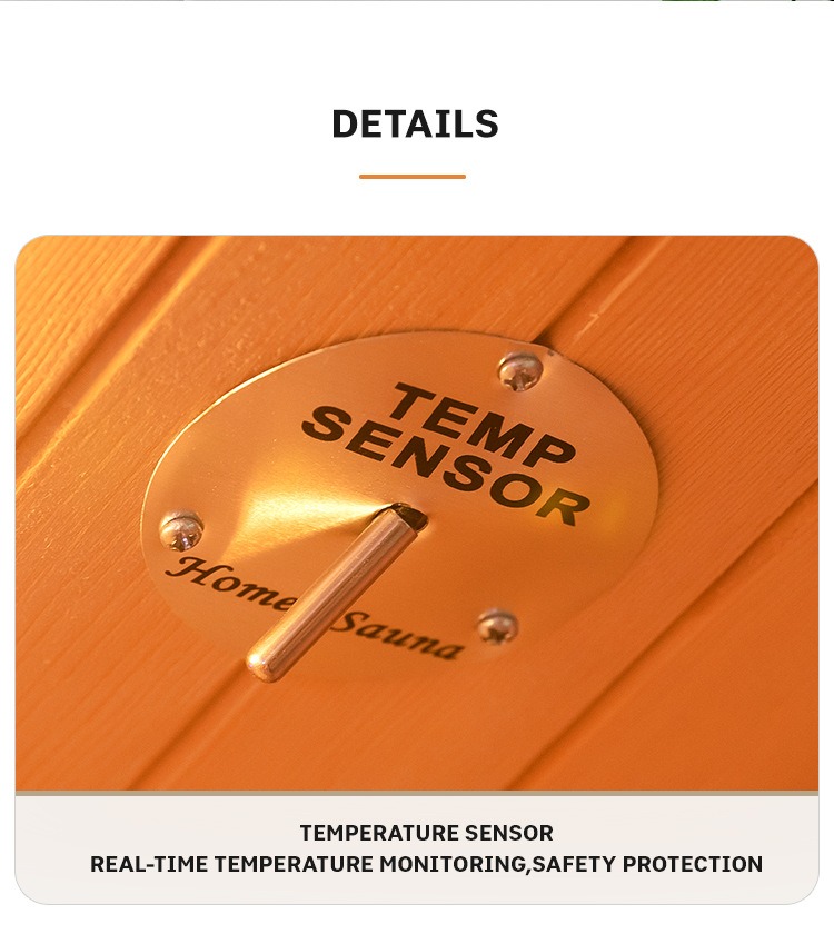 - Sistema de controle de temperatura em tempo real: O sensor de temperatura integrado monitora com precisão a temperatura interna para garantir a segurança da sauna.