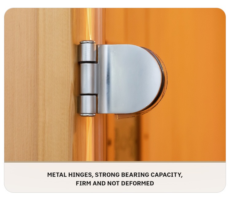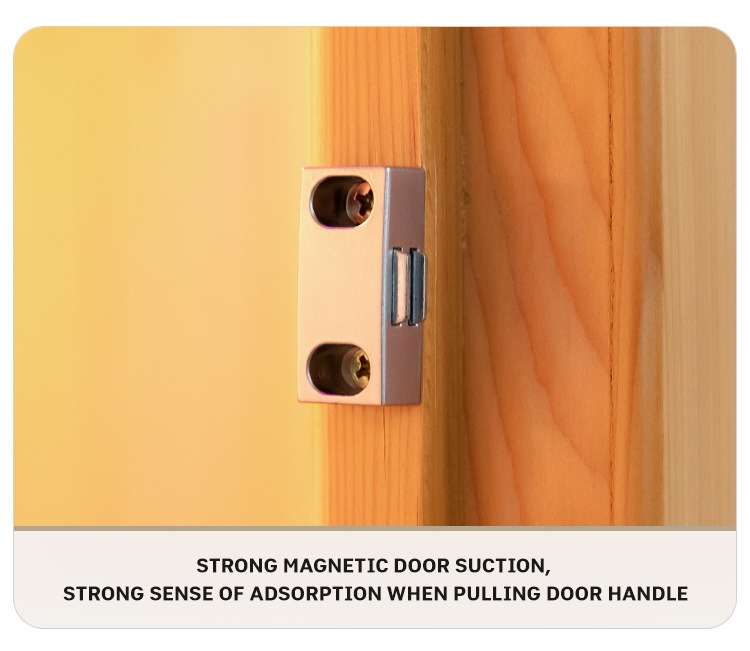- Dobradiças de metal e trava magnética da porta: as dobradiças de metal têm forte capacidade de carga sem deformação, e a trava magnética da porta é adsorvida firmemente para travar o calor e a privacidade.