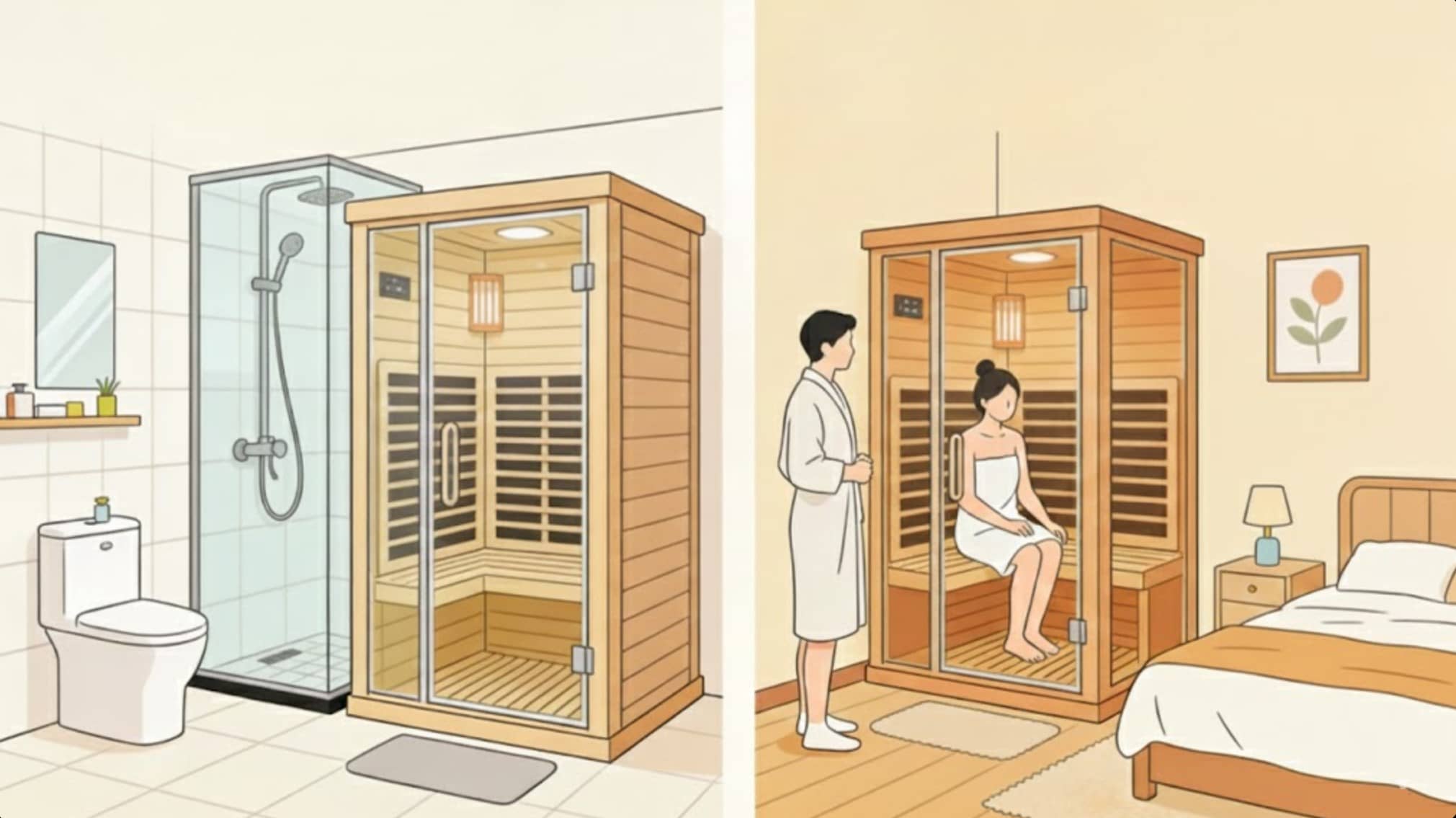 O feedback dos usuários mostra que as saunas a vapor induzem transpiração rápida na entrada, com uma forte sensação de calor úmido; saunas de infravermelho distante fornecem calor gradual que penetra no corpo e não é fácil sentir-se abafado mesmo quando está sentado imóvel. Isso ocorre porque a alta umidade reduz a eficiência da evaporação da água da mucosa respiratória, enquanto os raios infravermelhos aquecem o corpo por meio da ressonância com as células humanas, evitando o desconforto causado pelo aumento repentino da temperatura superficial.