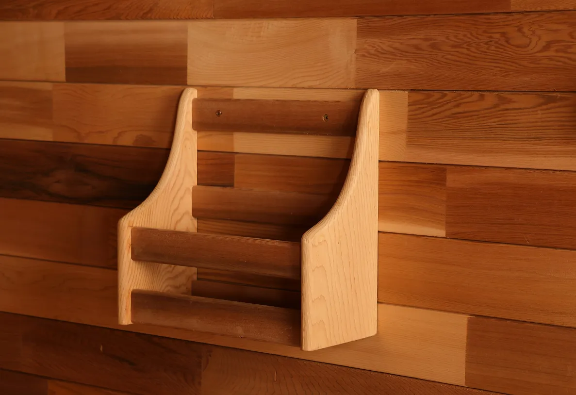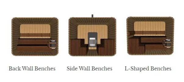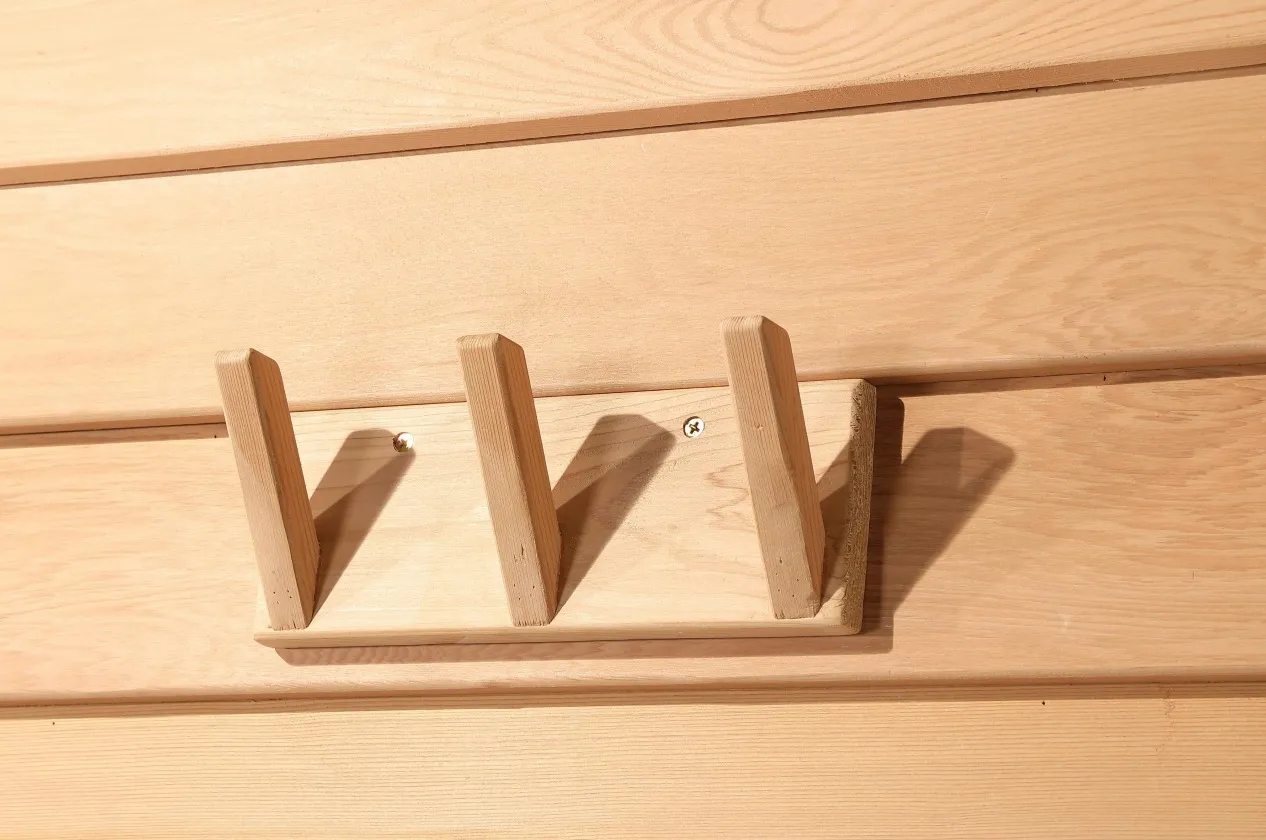 - Acessórios de conveniência: porta-copos, porta-revistas, cabide embutido (para guardar roupas e toalhas de maneira casual, eliminando a bagunça durante as sessões de sauna);