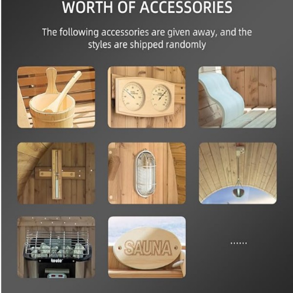 · ✅ [INSPIRAÇÃO DO DESIGN]: Madeira de pinho Thermo Finlandesa ecológica e sem produtos químicos com espessura de 1-3/8", perfis de madeira pré-montados e seções finais, faixas de barril de aço inoxidável para serviços pesados, dobradiças e fixadores.